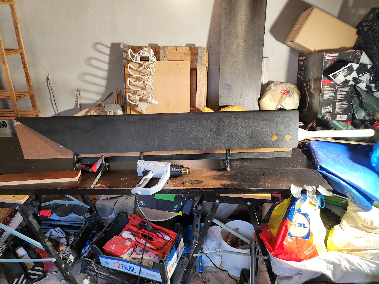 In an afternoon I used the belt sander to make the reclining edge for both sides, I tried to make it as even as possible. It was not important for me to get it smooth and looking very nice, because I was planning to cover it in a 2mm foam sheet later, anyway.